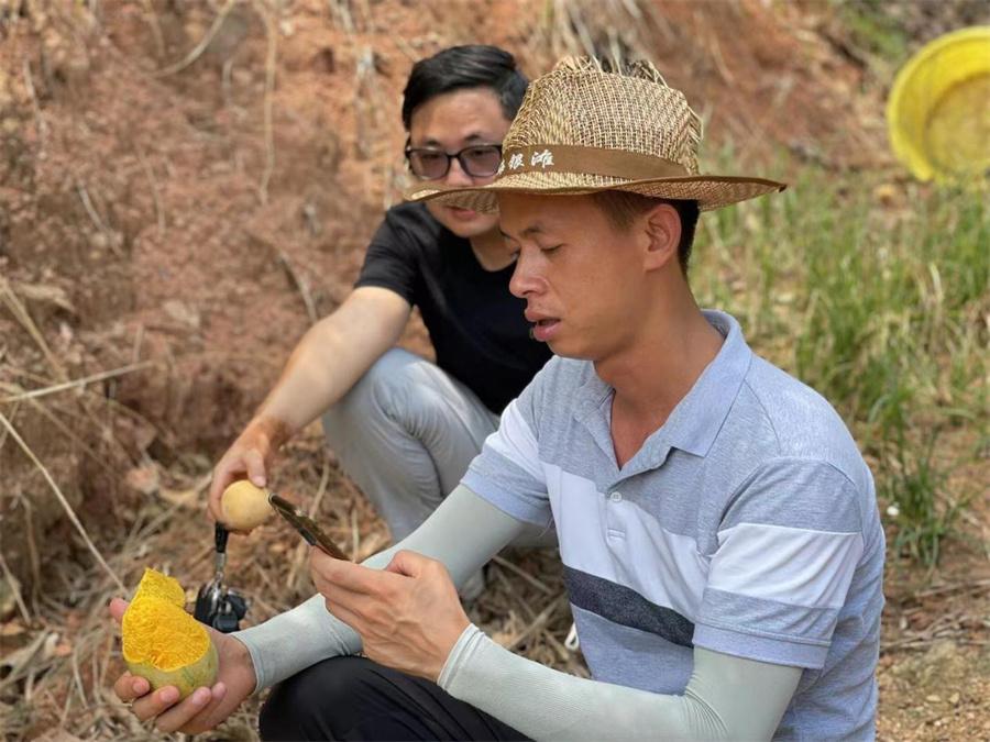觸感輕輕按壓果實,感受其彈性。